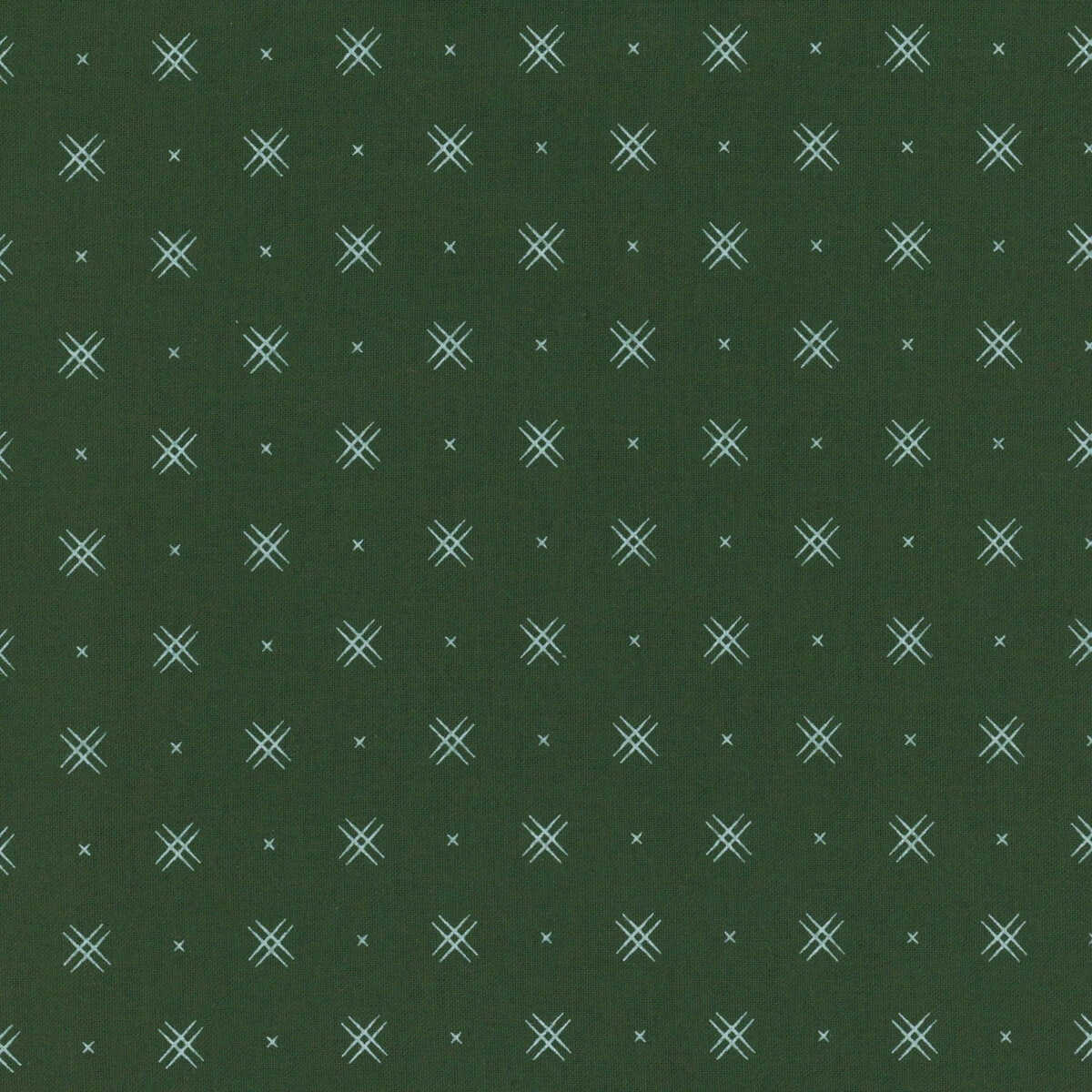 Beyond Bella by Annie Brady for Moda Fabrics features a single pattern that Annie has titled “On Point” on over 30 colors of Bella Solids. This green fabric with white x’s is versatile enough to use in a variety of projects.