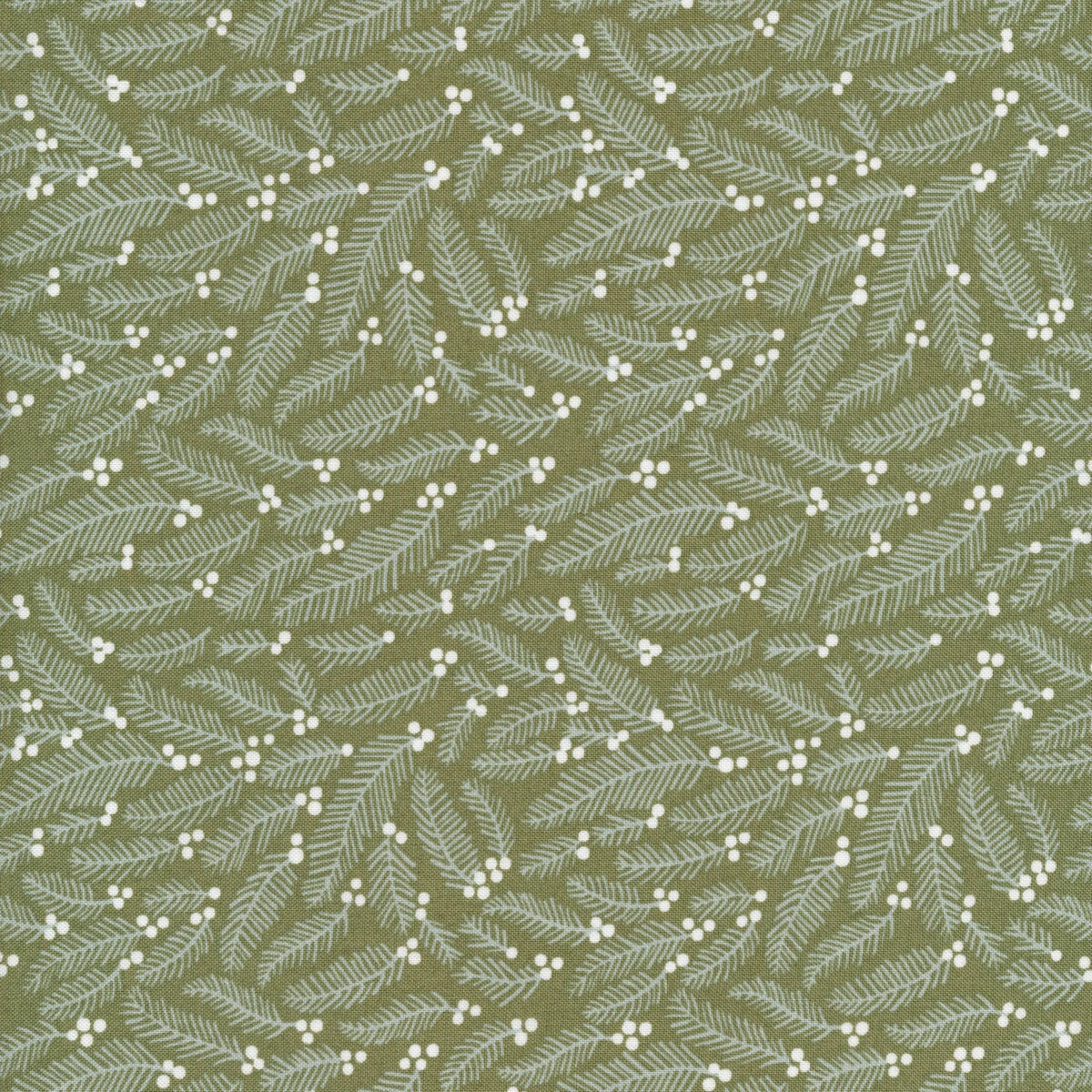 Christmas Eve by Lella Boutique for Moda Fabrics is a beautiful Christmas collection full of fun designs that are sure to get you in the Christmas spirit! This fabric features light blue pine sprigs with white berries on a sage green background.