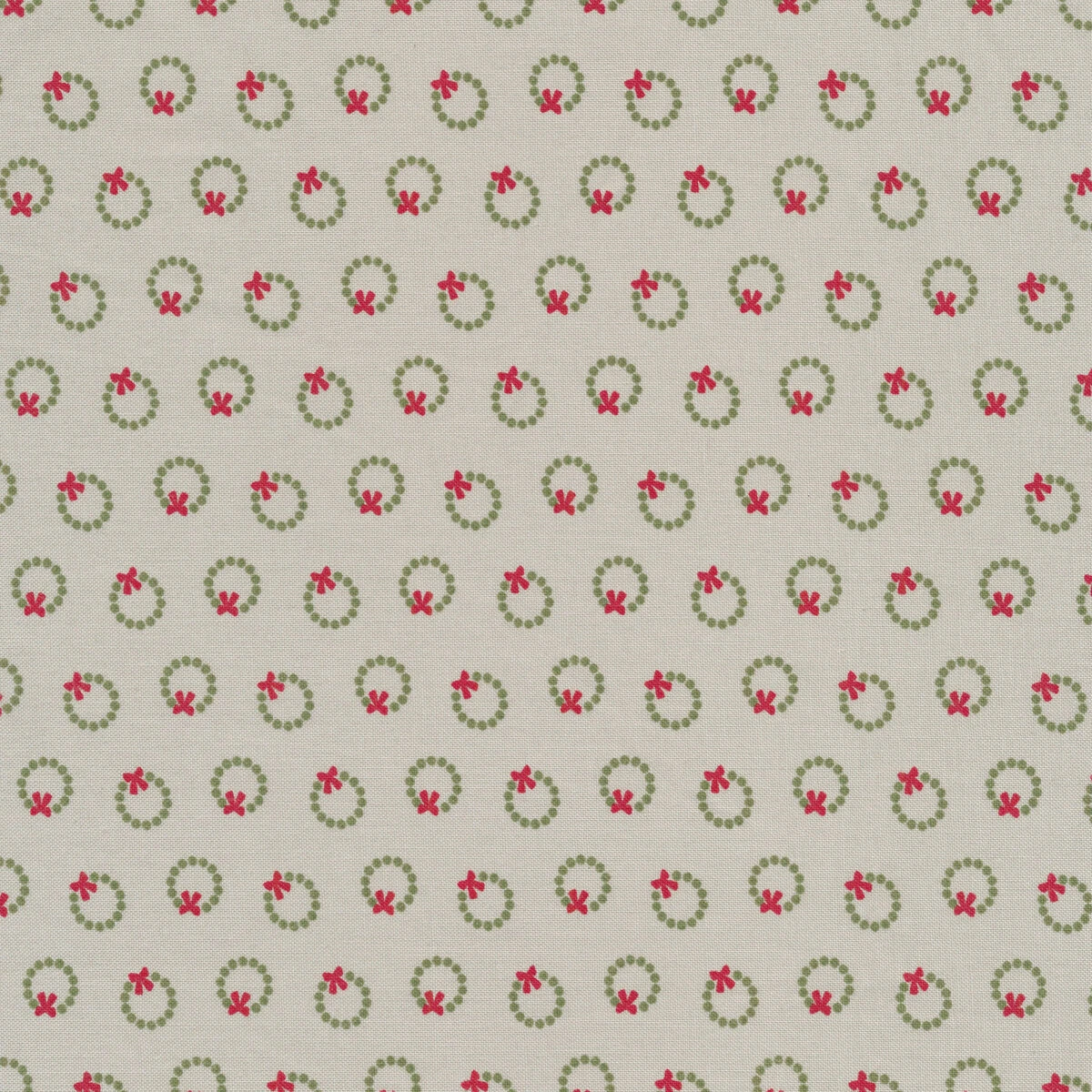 Christmas Eve by Lella Boutique for Moda Fabrics is a beautiful Christmas collection full of fun designs that are sure to get you in the Christmas spirit! This fabric features a ditzy pattern of Christmas wreaths on a gray background.