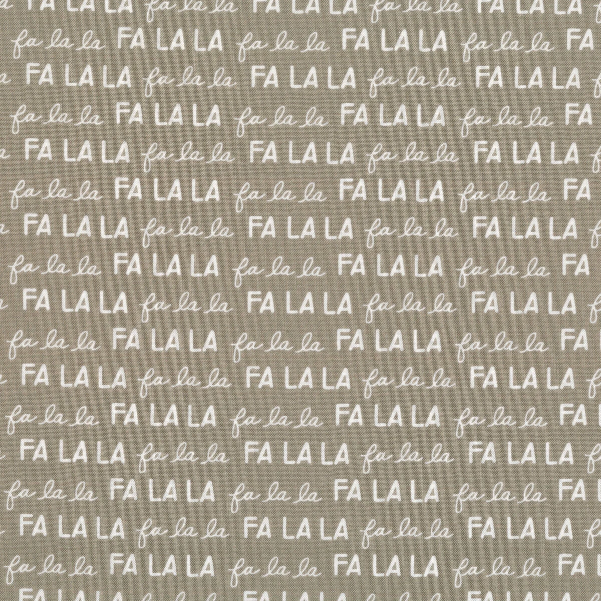 Christmas Eve by Lella Boutique for Moda Fabrics is a beautiful Christmas collection full of fun designs that are sure to get you in the Christmas spirit! This fabric features the words “Fa La La” in white fonts on a gray background.Â
