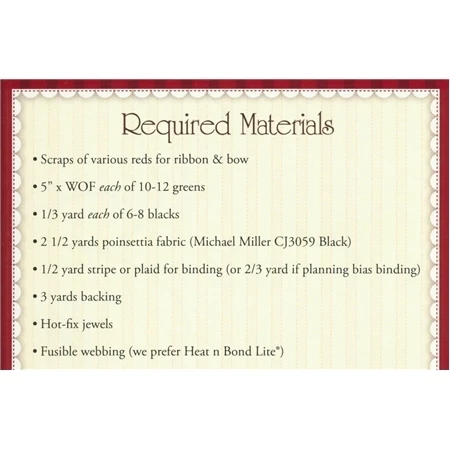 Christmas Glimmer is a stunning design by Jennifer Bosworth of Shabby Fabrics! The wreath is set off by a rich black background and is detailed with gorgeous poinsettias, a rich red ribbon and bow, and over 100 hot fix rhinestones for extra sparkle! This is a wall hanging you’ll want to pass down through the generations! Finished size is 45-1/2″ x 45-1/2″. This pattern includes all instructions.