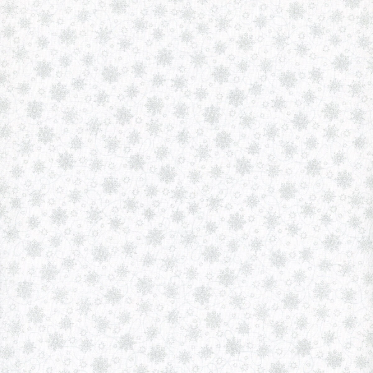 Christmas Night by Monique Jacobs for Maywood Studio is a fun Christmas collection full of plaids, snowflakes, Christmas trees all with a fun illustration style. This fabric features light gray snowflakes and swirls on a white background.