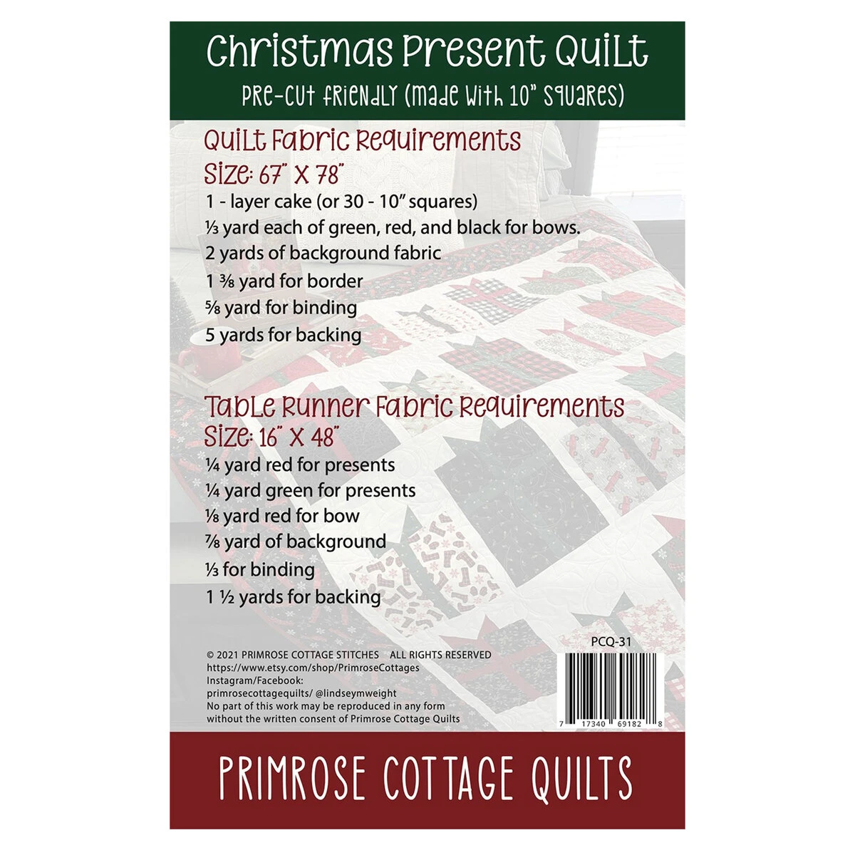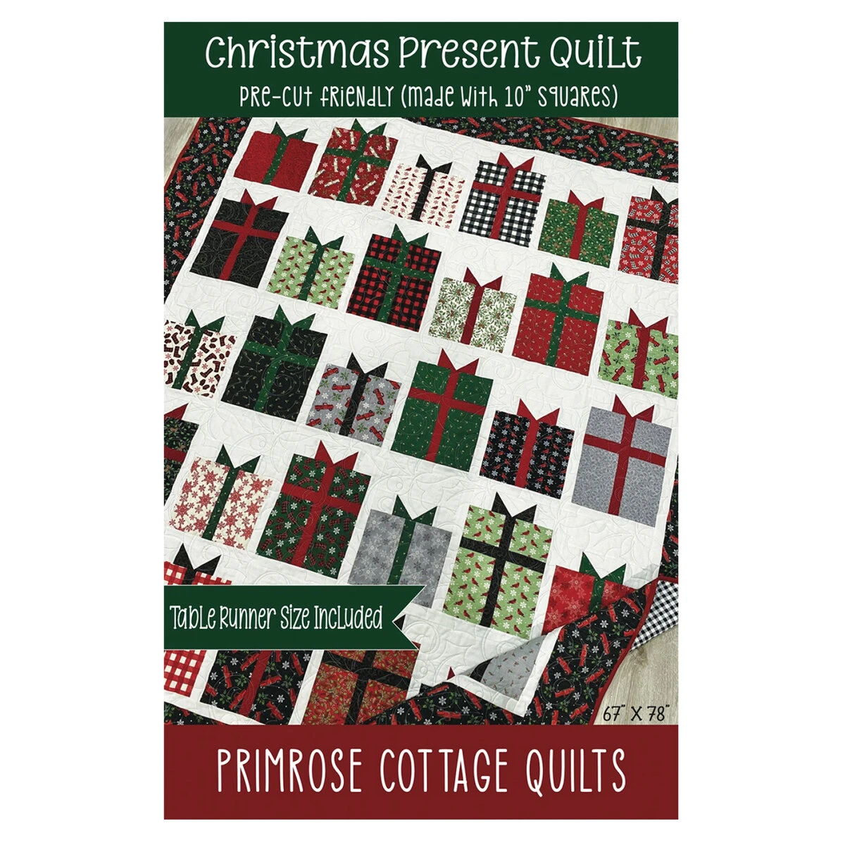 Christmas Present Quilt by Primrose Cottage is a fully color illustrated quilt and table topper pattern that features adorable and festive Christmas Present blocks.
