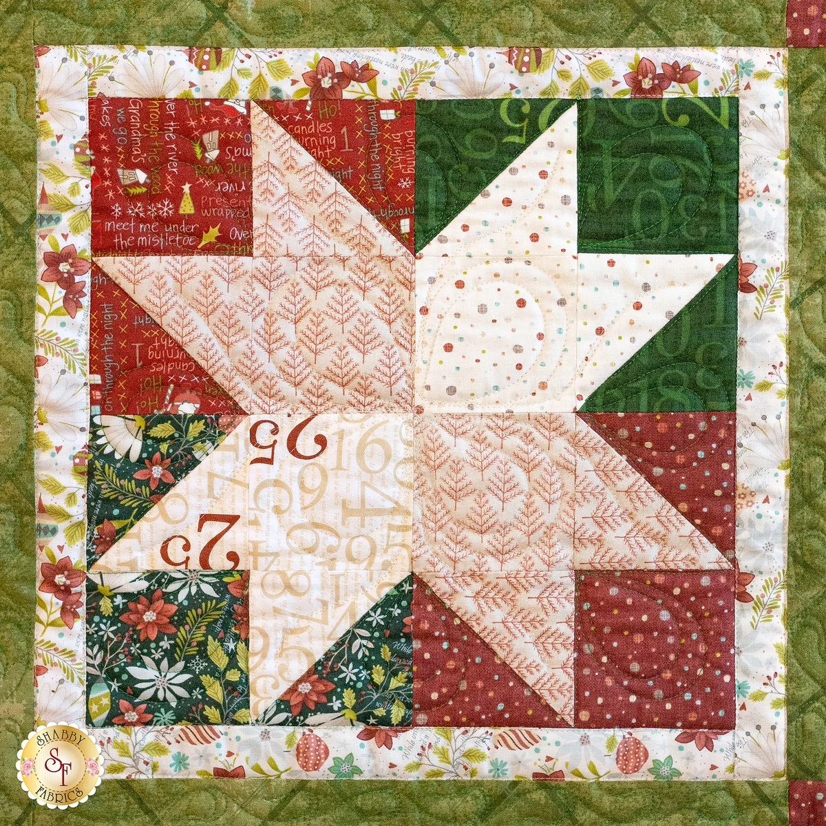 You will love making and displaying The Countdown to Christmas Quilt this holiday season. Designed by Shabby Fabrics using the Countdown to Christmas collection by Henry Glass Fabrics, complete your Christmas décor with the coordinating Placemats, Table Runner and Cloth Napkins. Quilt finishes to 54-1/2″ x 69-1/2″.
