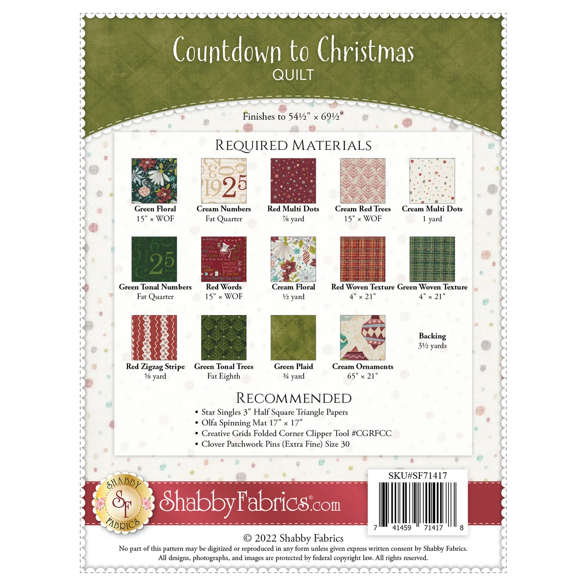 You will love making and displaying this charming quilt this Christmas season. Designed by Shabby Fabrics using the Countdown to Christmas collection by Henry Glass Fabrics, complete your décor with the coordinating Placemats, Table Runner and Cloth Napkins. Quilt finishes to 54-1/2″ x 69-1/2″.