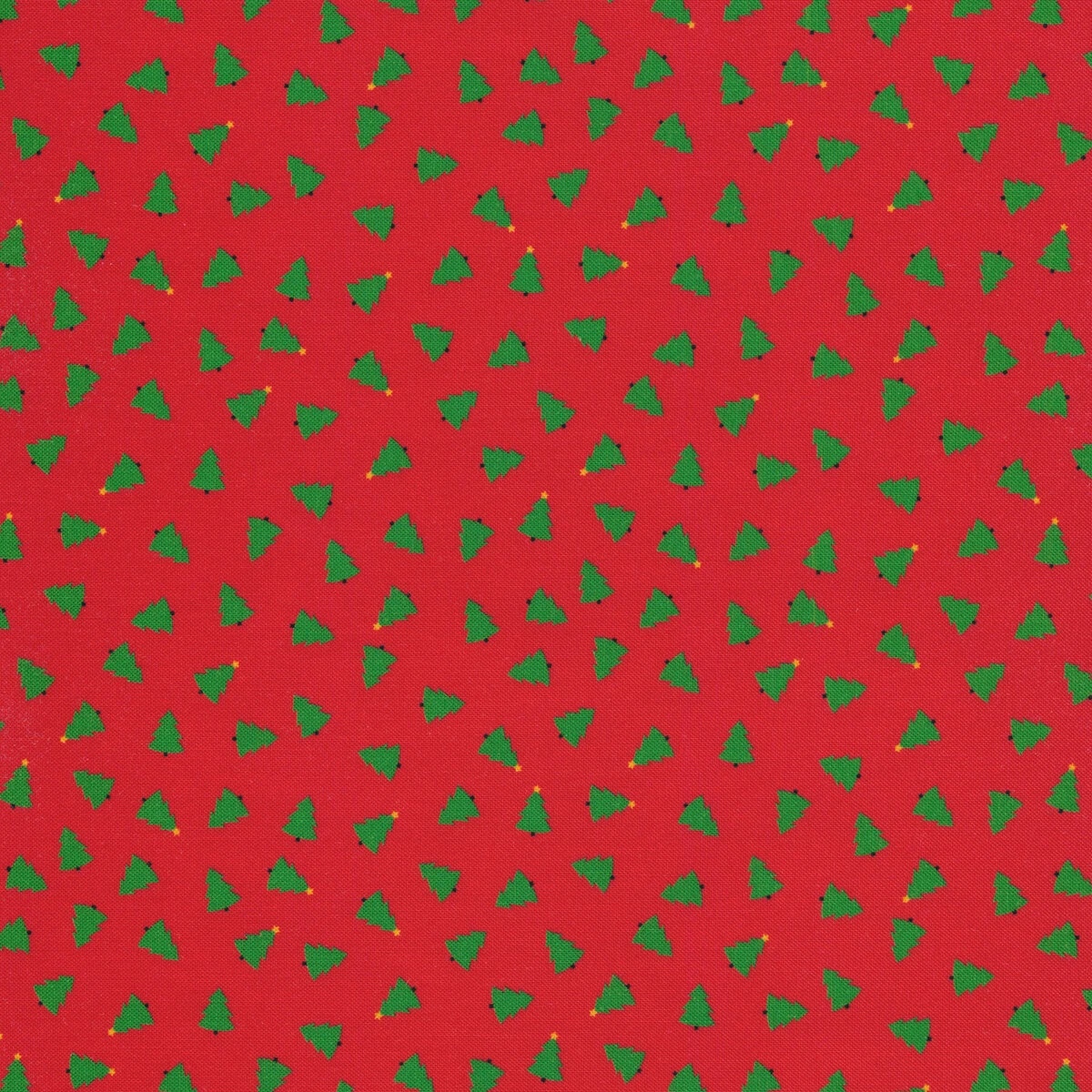 This Holiday Essentials – Christmas Collection designed by Stacy Iest Hsu for Moda features classic red and green colors with sweet ditsy print motifs of Santas, ornaments, holly leaves, candy canes and more! These green Christmas trees on a red background will look great year round! Try this fabric in your next Christmas tote!Â