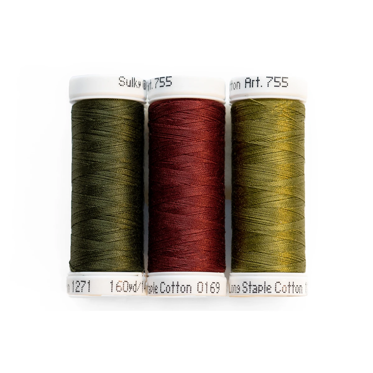- Three (3) Sulky 50wt Cotton Spools (Colors: 169, 1156, 1271)