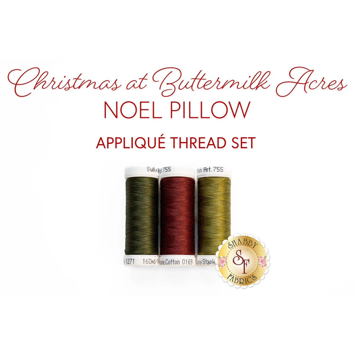 This is the coordinating 3pc Appliqué thread set for the Noel Pillow Kit – Christmas at Buttermilk Acres – this thread set is designed for appliqué work on your kit.