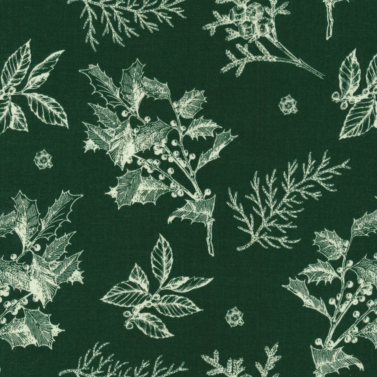 Old Fashioned Christmas by My Mind’s Eye for Riley Blake Designs is an adorable Christmas collection featuring fun vintage-inspired designs, Santa Clause prints, and classic holiday motifs! This nostalgic fabric features white outlines of berries, sprigs, and leaves all over a forest green background.