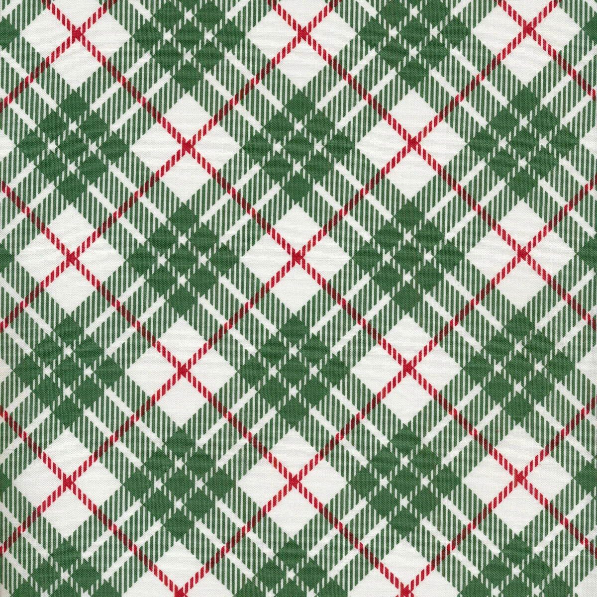Old Fashioned Christmas by My Mind’s Eye for Riley Blake Designs is an adorable Christmas collection featuring fun vintage-inspired designs, Santa Clause prints, and classic holiday motifs! Make something fun with this classic white and green plaid fabric.