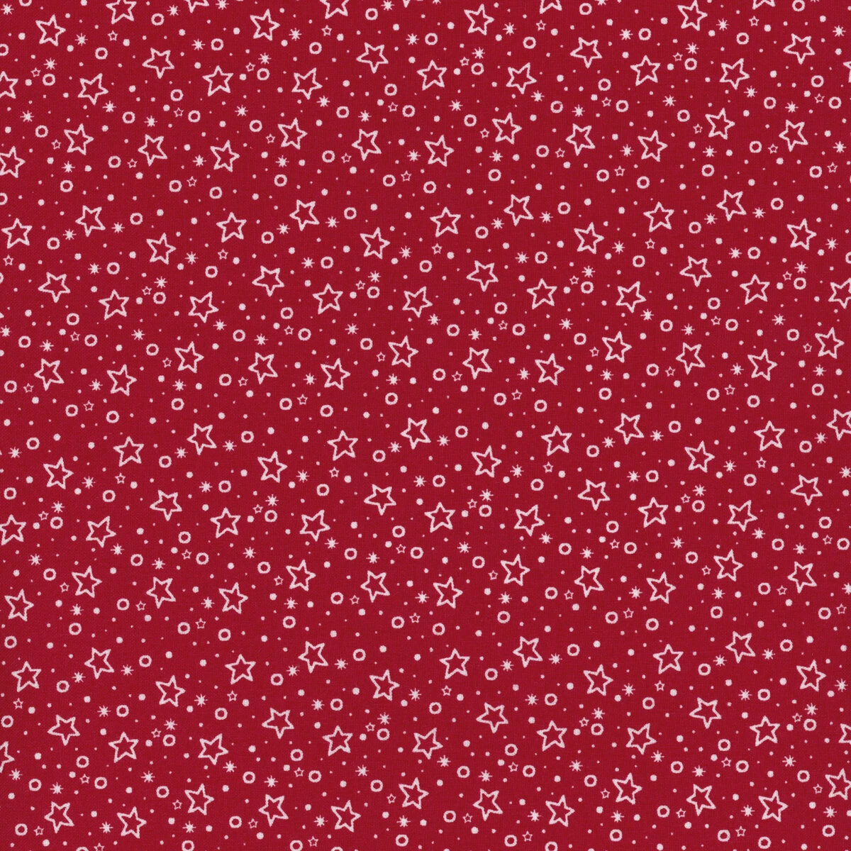 Redwork Christmas from Henry Glass is a charming nostalgic collection featuring traditional redwork designs with Christmas motifs like holly, presents, and stockings with more versatile patterns to accent your next holiday quilt! This fabric features white ditzy stars and dots tossed on a red background.