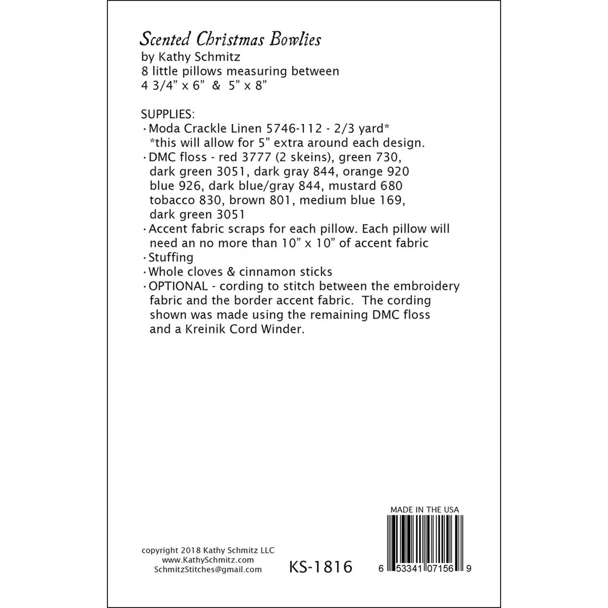 This fun pattern will have you creating beautiful Christmas decor in no time! With the Scented Christmas Bowlies by Kathy Schmitz, you’ll be able to create 8 little pillows measuring between 4¾” x 6″ and 5″ x 8″. These are the perfect home decor for the Holidays! Pattern includes assembly instructions and diagrams.