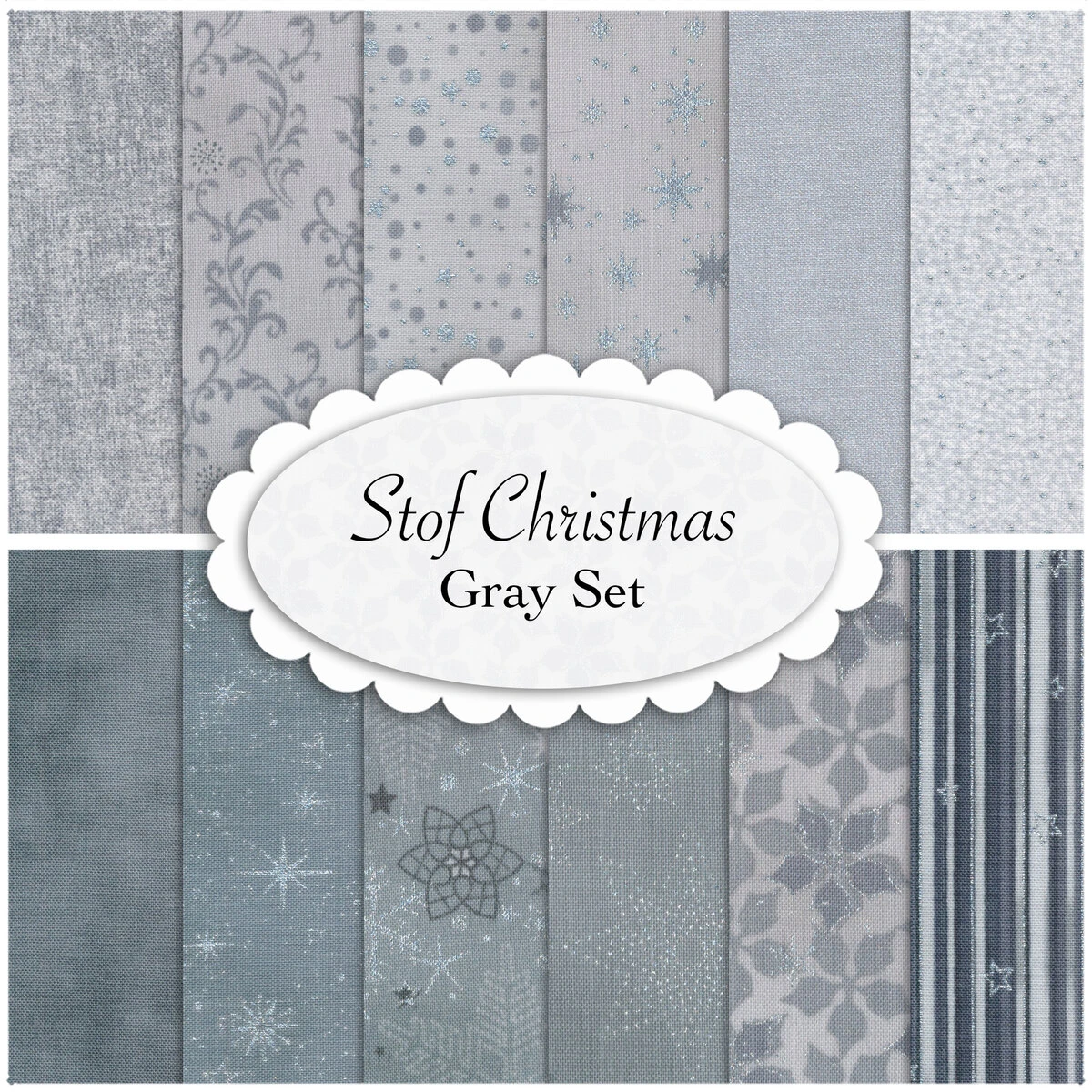 Stof Christmas is a combination of multiple beautiful fabric collections by Stof Fabrics with metallic and pearlized accents. 100% Cotton. This set contains 12 fat quarters, each measuring approximately 18″ x 21″.