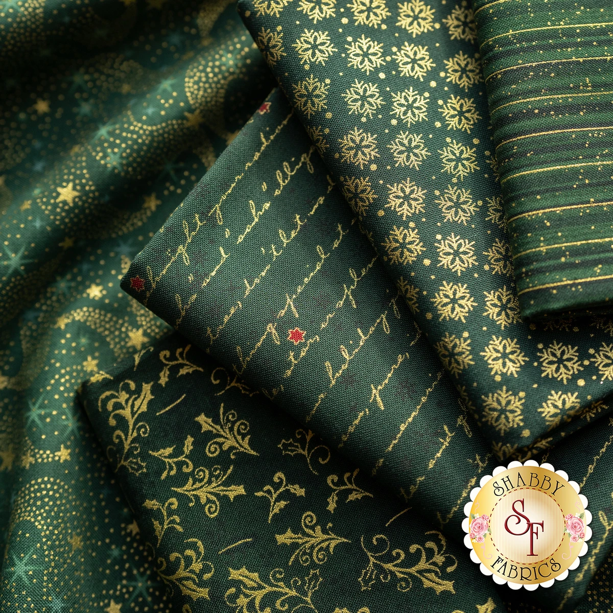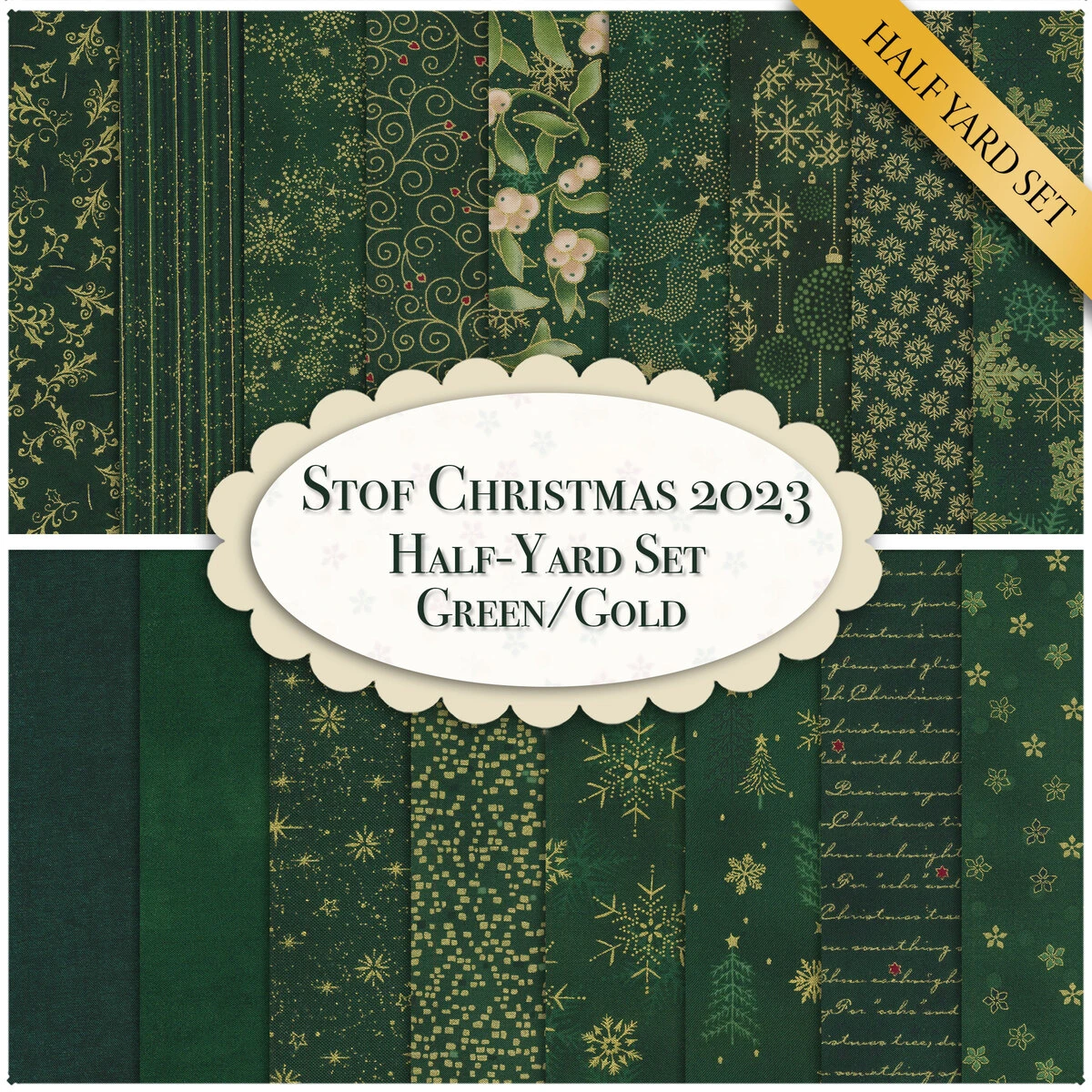 This Green/Gold set contains 17 Half Yard Cuts.