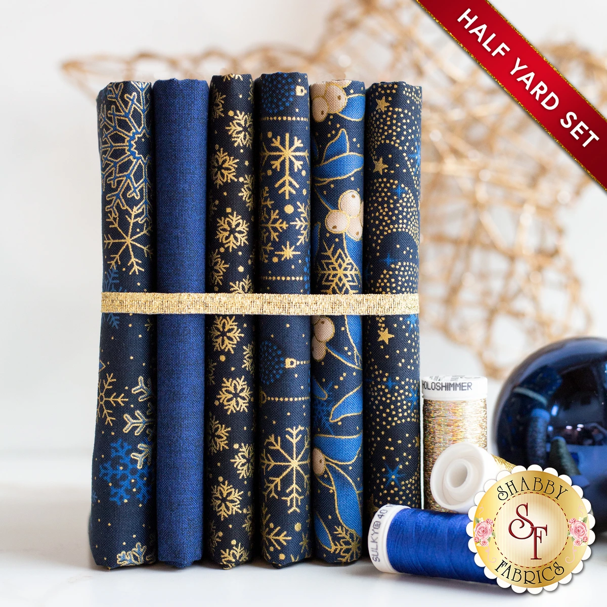This Blue/Gold set contains 6 Half Yard Cuts.