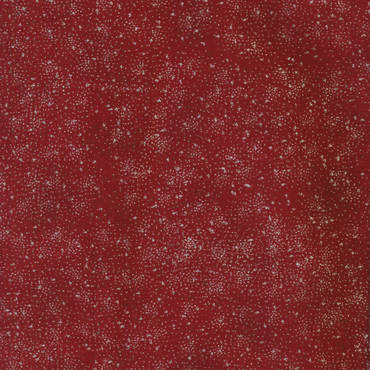 Frosty Snowflake by Stof Fabrics is another beautiful Christmas fabric collection full of gold and silver metallic accents. You’ll find snowflakes, swirls, scrolls, stars, and more! This fabric features dark red and silver metallic speckles all over a mottled red background.