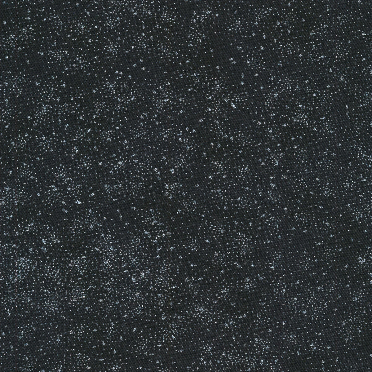 Frosty Snowflake by Stof Fabrics is another beautiful Christmas fabric collection full of gold and silver metallic accents. You’ll find snowflakes, swirls, scrolls, stars, and more! This fabric features silver metallic speckled dots all over a black and charcoal mottled background.