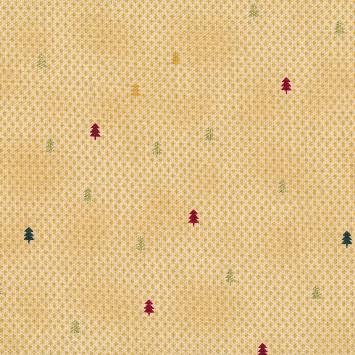 Stof Christmas – Star Sprinkle is a beautiful collection by Stof Fabrics that features wonderful Christmas fabric with metallic accents! Decorate your next winter quilt with this tan fabric featuring a white lattice design and small red, green, and metallic pine tree accents.Â