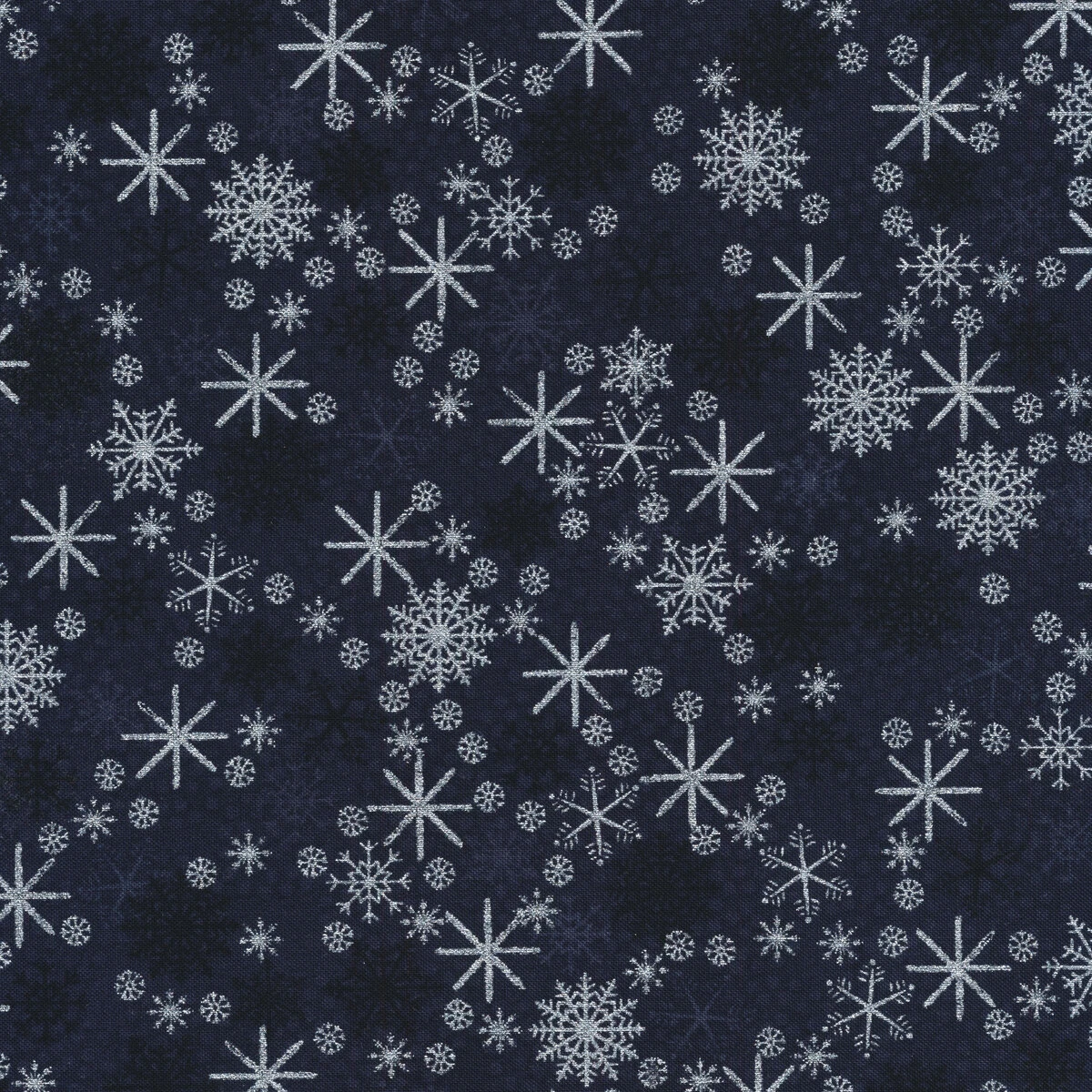 Stof Christmas – Star Sprinkle is a beautiful collection by Stof Fabrics that features wonderful Christmas fabric with metallic accents! This mottled navy background features a varied collection of snowflakes, giving the impression of a beautiful winter evening snowfall.