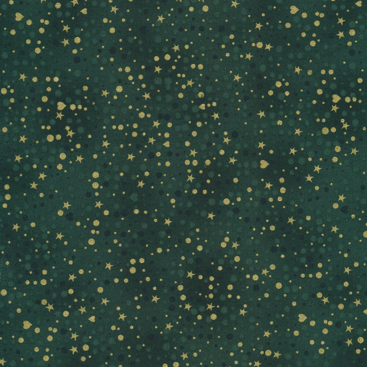 Stof Christmas – Star Sprinkle is a beautiful collection by Stof Fabrics that features wonderful Christmas fabric with metallic accents! Get ready for the holidays with this lovely dark green mottled fabric that features spots, and golden metallic hearts and stars.
