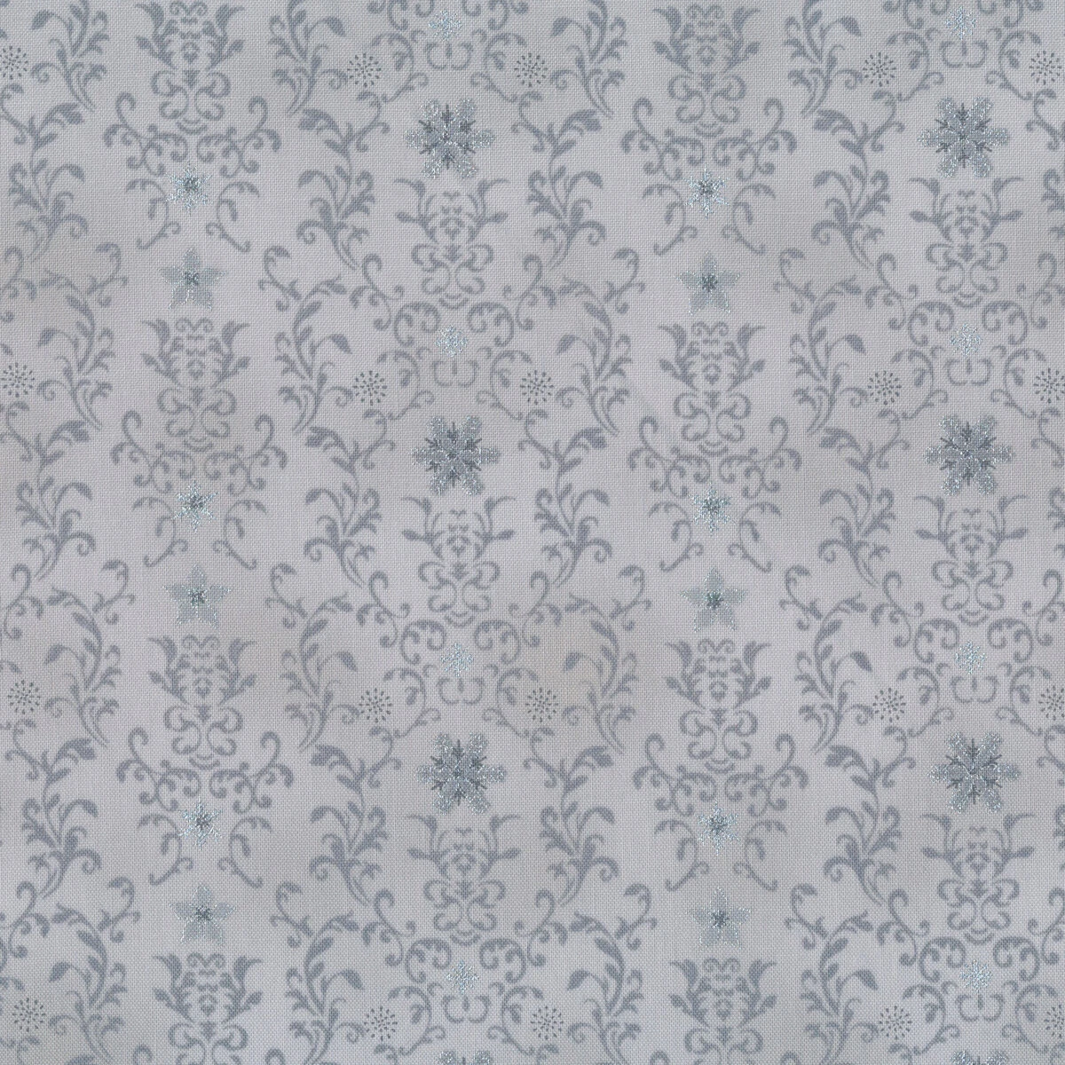 Stof Christmas – Star Sprinkle is a beautiful collection by Stof Fabrics that features wonderful Christmas fabric with metallic accents! Add a neutral look to your next Christmas project with this gray fabric featuring elegant dark gray swirls and scrolls with silver metallic snowflake accents.