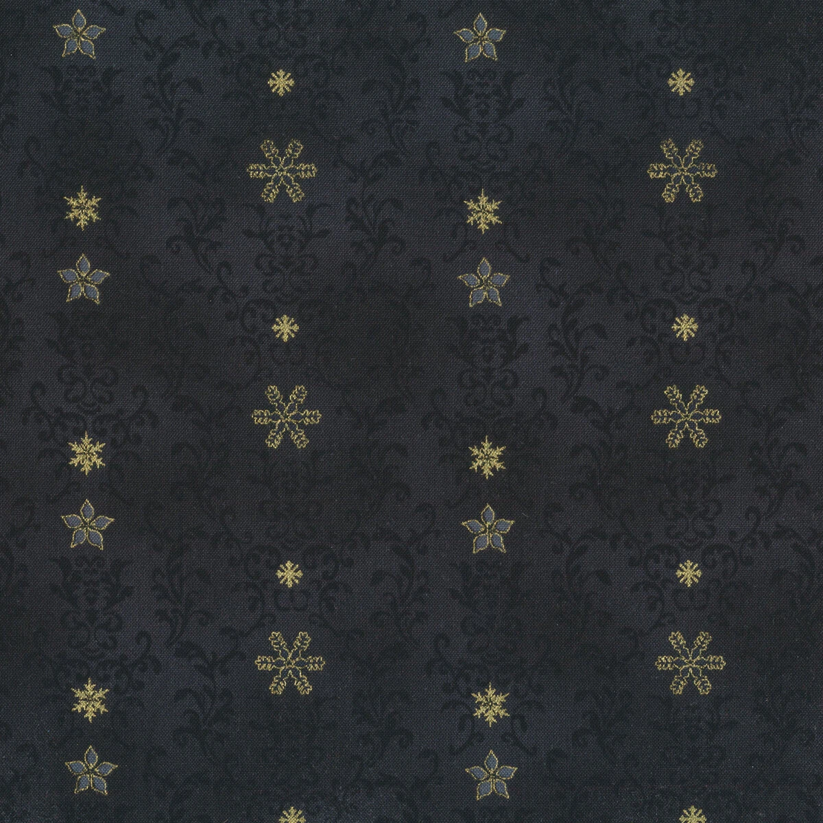 Stof Christmas – Star Sprinkle is a beautiful collection by Stof Fabrics that features wonderful Christmas fabric with metallic accents! Accent your next winter project with this black mottled fabric featuring elegant black swirls and scrolls and snowflakes with gold metallic outlines.