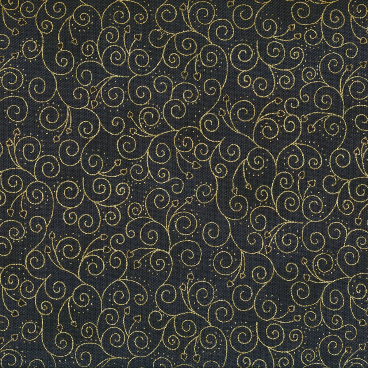 Stof Christmas – Star Sprinkle is a beautiful collection by Stof Fabrics that features wonderful Christmas fabric with metallic accents! Accent your next winter project with this black mottled fabric featuring gold metallic swirls and scrolls with leaves.