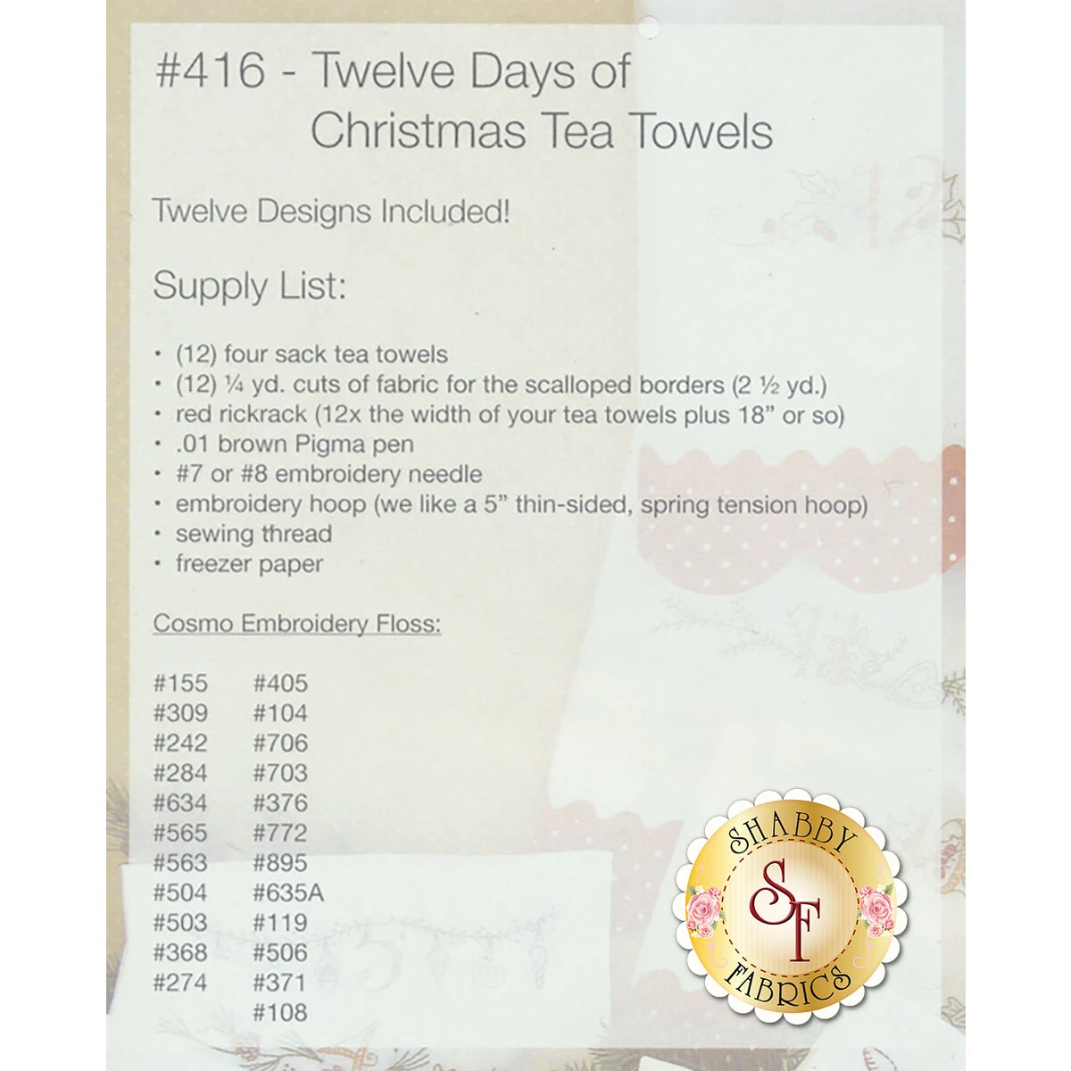 Twelve Days Of Christmas Tea Towels Pattern